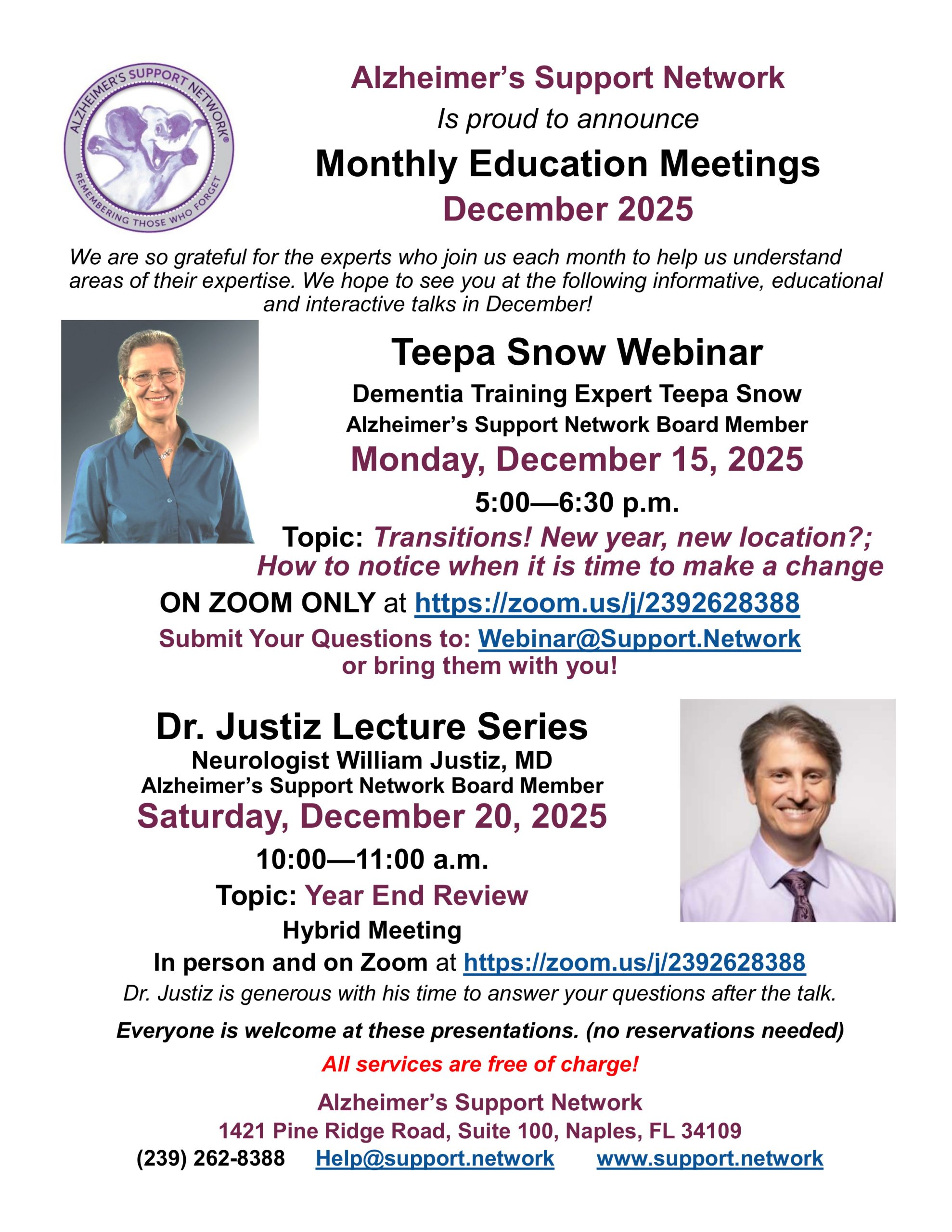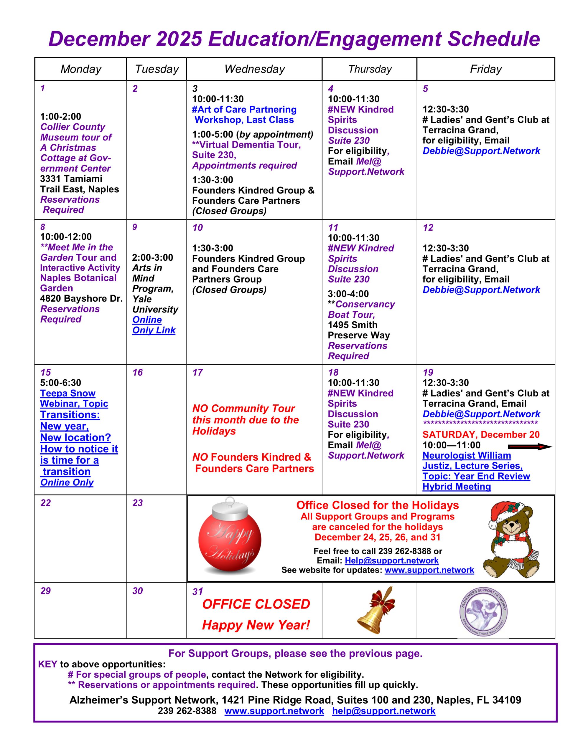 Monthly Flyers Dec Support Groups VIEW FLYER Care Partner Workshop VIEW FLYER Dec Educational & Engagement VIEW FLYER Engagement Notes VIEW FLYER Dec Speakers VIEW FLYER Yale Arts in Mind VIEW FLYER